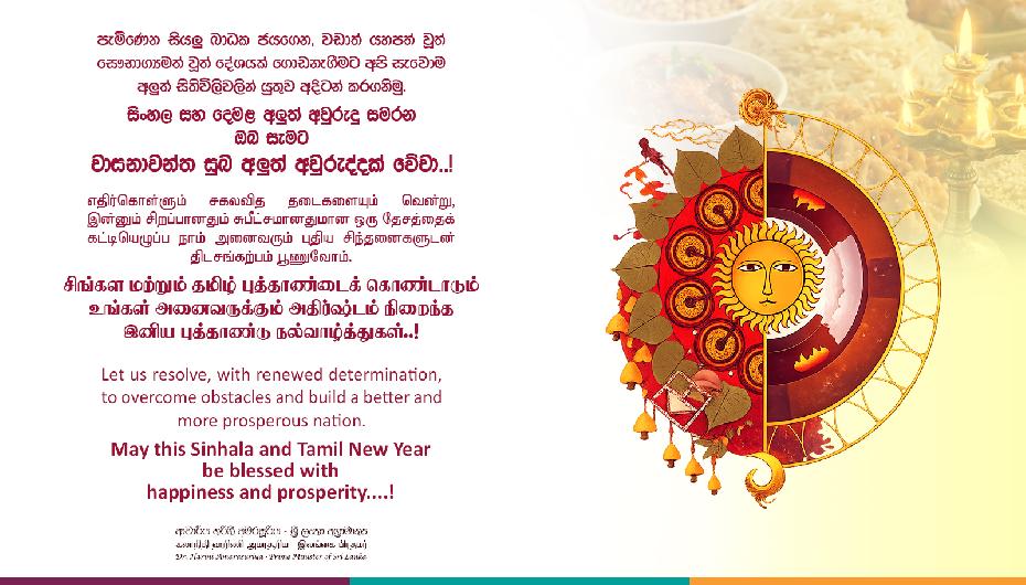 On this occasion, I extend my wishes for a peaceful and prosperous Sinhala and Tamil New Year to all Sri Lankans who celebrate this occasion with their families and loved ones, observing customs at the auspicious time.